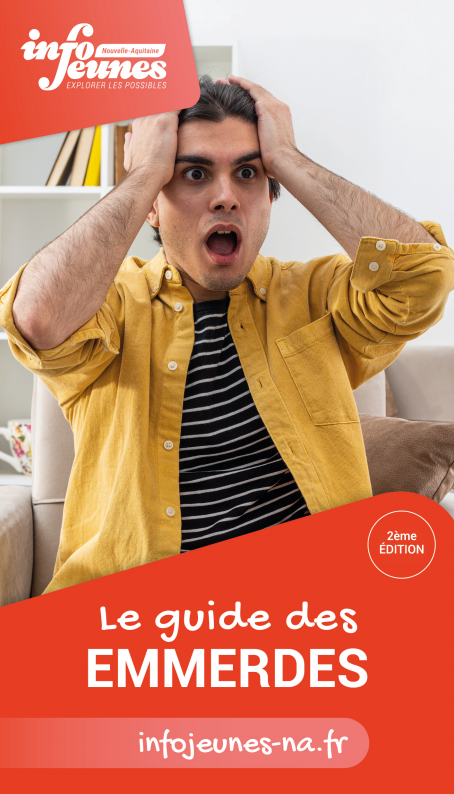 Info Jeunes Nouvelle-Aquitaine a remis à jour son "Guide des emmerdes" et il sort pour la rentrée ! C'est un guide d'informations pratique pour aider les jeunes à résoudre les galères du quotidien : perte de ses papiers, découvert bancaire, conflit au travail, problème avec un propriétaire, erreur d'orientation… Il apporte des réponses à des problèmes bien concrets dans des domaines aussi divers que les études, la santé, le travail, la vie quotidienne… Le Guide des emmerdes est consultable en ligne sur infojeunes-na.fr et la version papier sera bientôt disponible dans toutes les structures Info Jeunes de Nouvelle-Aquitaine.