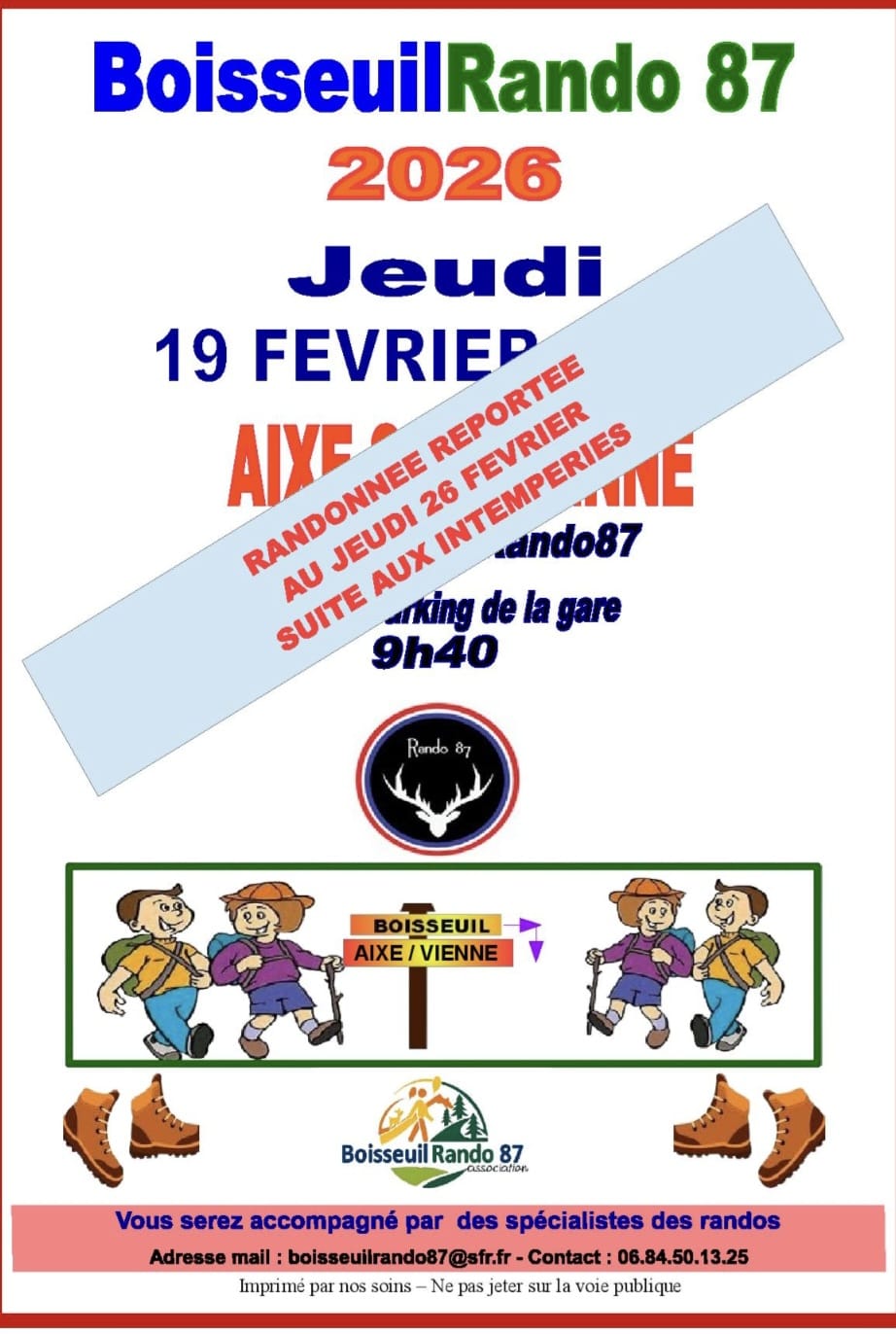 ➡️ Suite aux conditions météorologiques de ces derniers jours , le terrain de football d'honneur et le terrain d'entraînement au stade municipal de Boisseuil sont interdits à la pratique sportive 🗓️ Jusqu'au vendredi 20 février 2026 inclus. Merci de votre compréhension.