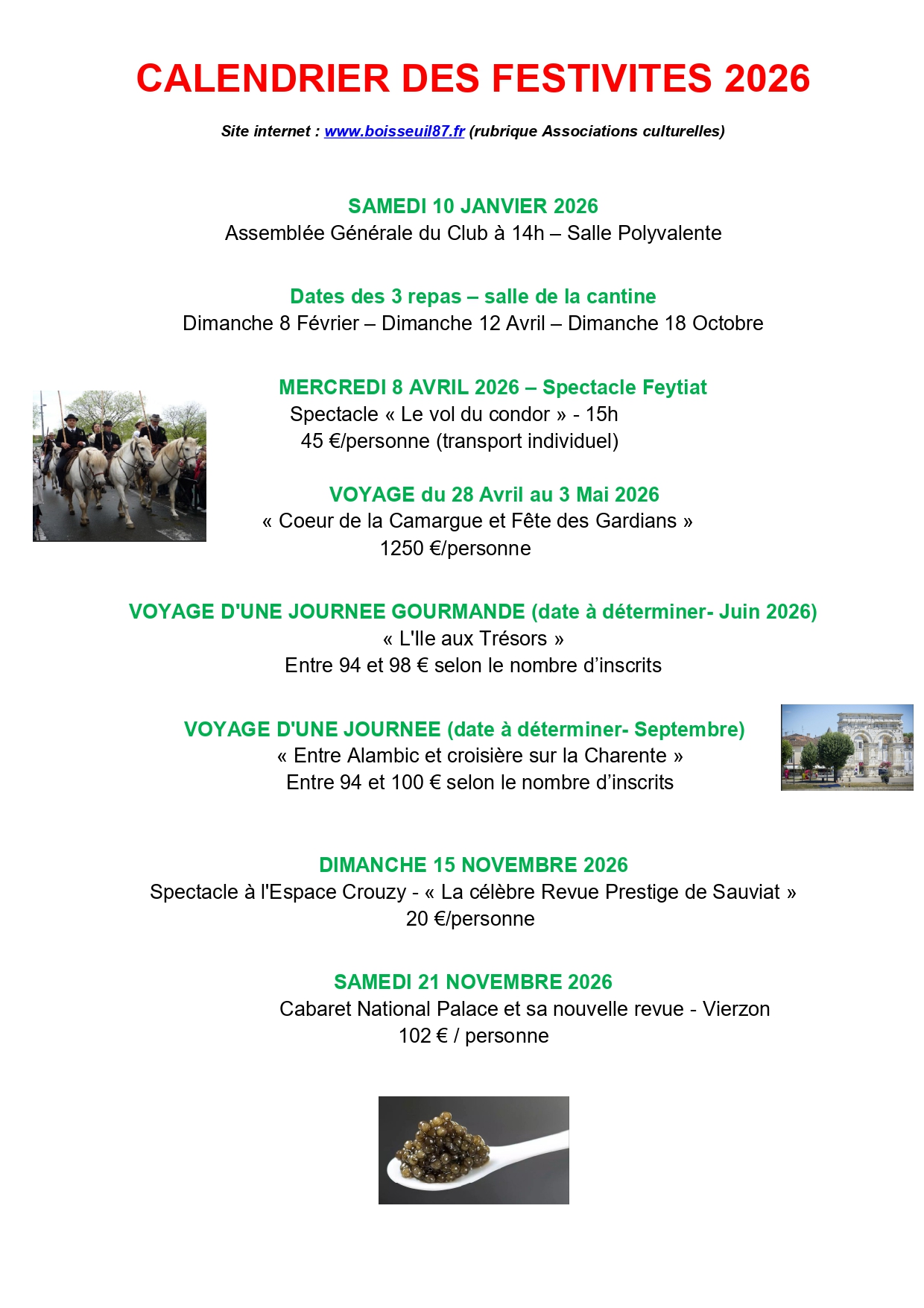 - SPECTACLES : Les sorties (concert- cabaret- théâtre) selon les opportunités proposées.
