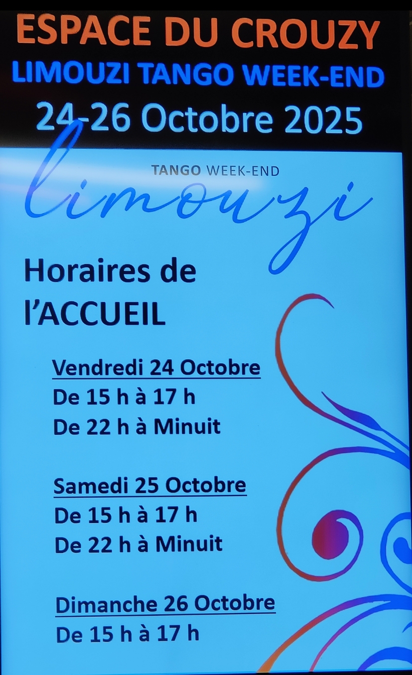 📅 Du 24 au 26 octobre 2025 📅 💃 Par l'association Tango A Vivre Le tango est une danse populaire, intergénérationnelle et qui se partage avec tous les danseurs du monde car son langage est universel. ➡️ Soirée réservée aux Boisseuillais : initiation gratuite et rencontre autour du tango le jeudi 23 octobre Contact à l'adresse 📧tangoavivre@gmail.com ou par téléphone au 06 13 89 48 78 📞